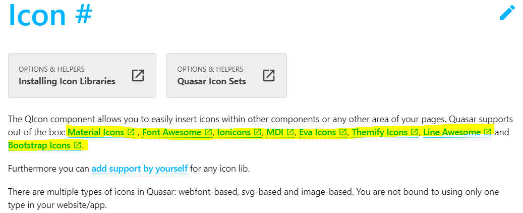 [Quasar/퀘이사] Quasar dev 활용, 사용할 수 있는 icon 본문