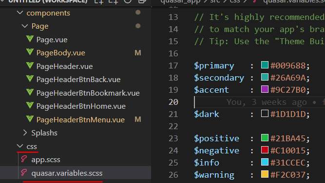 [Quasar/퀘이사] css, 테마 색상 지정 및 변경하기 본문