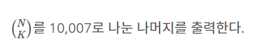 11051번: 이항 계수 2