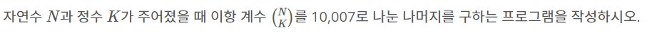 [코딩 테스트 연습(파이썬/Python)] 백준 11051번 _ 이항 계수 2 본문