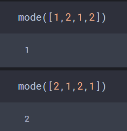 과거에는 statistics.mode()가 최빈값이 있으면 반환하고, 없으면 error를 발생시켰던 것 같다. 그러나 지금은 최빈값 중 더 앞에 위치한 것(문자, 배열 등이 모두 가능)을 반환하여 해당 문제를 이 코드로 풀 수 없다.