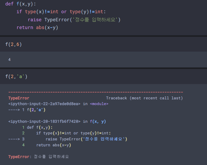| TypeError | 잘못된 type의 변수가 전달된 경우 |
