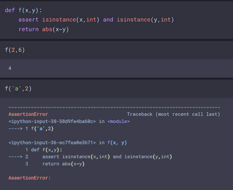 또한 booltype의 조건을 만들어 놓고, 해당 조건을 만족하지 않는 경우 AssertionError를 발생시키는 것도 가능한데, asseert 함수를 사용하면 된다.