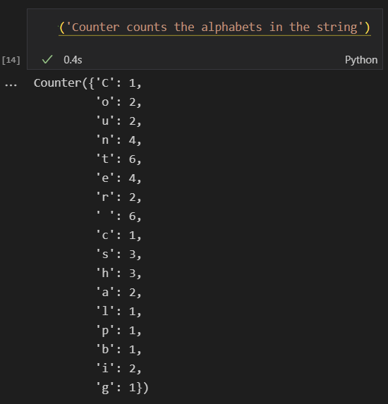 iterator 객체를 넣어주었을 때, 객체가 포함하는 인자들의 갯수들을 세어주는 모듈이다.