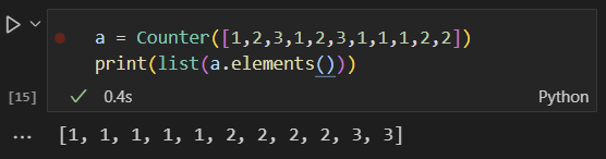 이런 식으로 정의할 수 있다. 사전화된 Counter 객체를 다시 원래 iterator 객체의 구성으로 되돌릴 수 있다. (순서는 보장되지 않는다.)