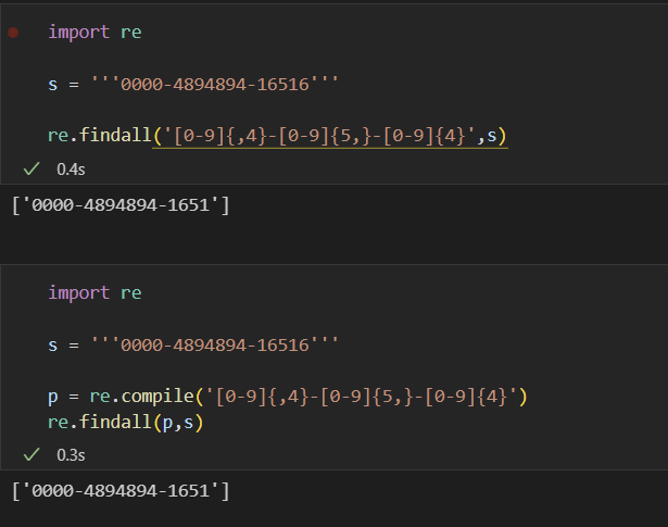 위 코드와 아래 코드는 동일한 작동을 하지만, 먼저 규칙을 compile 하고 method를 사용하는 것이 시간 복잡도 면에서 훨씬 우월하다고 한다. (특히나 같은 규칙에 대해 잦은 반복을 할 때)