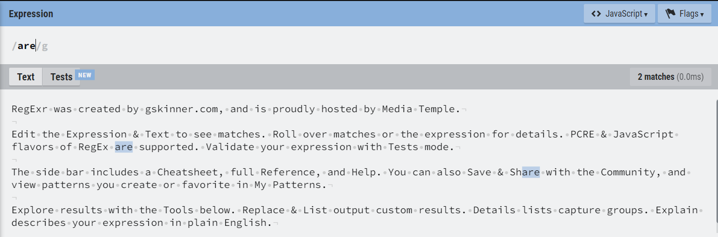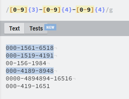 꿀팁이다. 해당 링크로 이동하면, 테스트하고 싶은 텍스트를 입력한 뒤에 손쉽고 보기 좋게 정규식 표현을 해당 텍스트에 적용해볼 수 있다.
