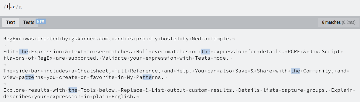 문자 그대로 't.e'를 찾고 싶다면 't[.]e'를 사용해야 한다.