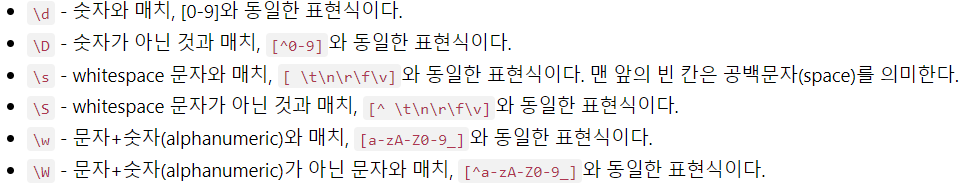 (\w: 문자+숫자, \s: white space, \d: 숫자)