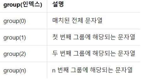 group 메서드로 특정 그룹만 읽어올 수 있는데, index의 의미는 아래와 같다.