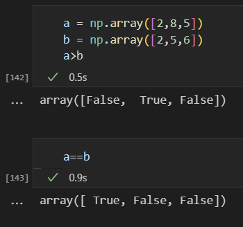 array끼리의 비교도 가능하다. boolean을 원소로 갖는 array를 반환해준다.