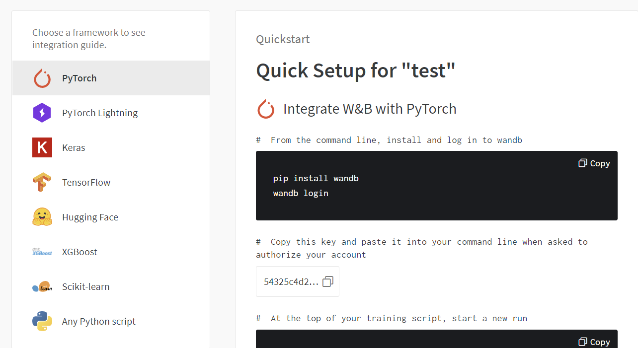 Pytorch 뿐만 아니라 다른 프레임워크 관련 예시 코드들은 wandb깃허브에서 제공하고 있다. 추가로 documentation page를 참고하자.