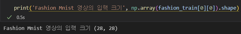 Fashion-Mnist의 이미지는 channel이 1개인 gray scale이다.