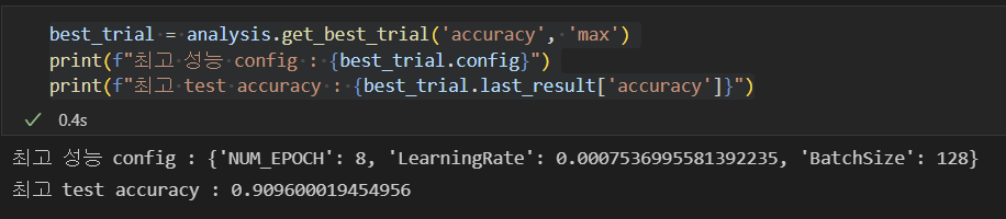 print(f"최고 test accuracy : {best_trial.last_result['accuracy']}")