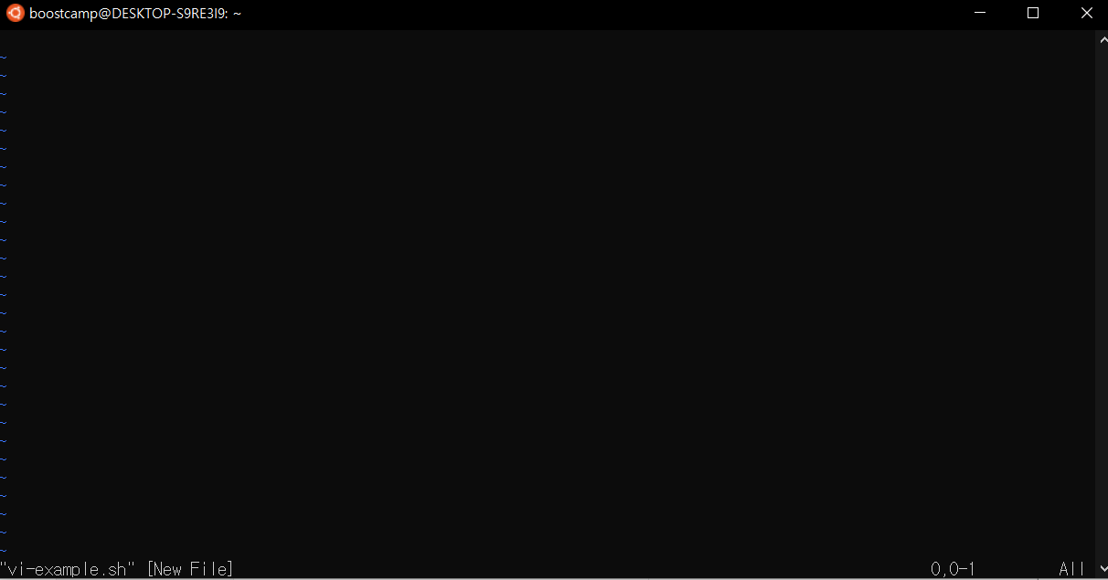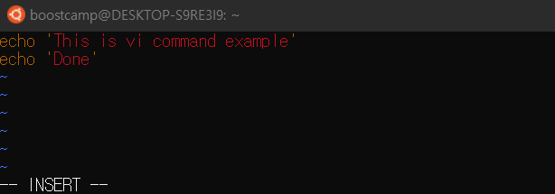 처음 명령어 'vi vi-example.sh'를 입력하면 위와 같은 상태인데, 이때 i를 눌러 Insert Mode로 전환해야만 내용을 입력할 수 있다.