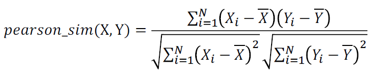 코사인 유사도의 변형이다. 피어슨 상관계수의 연산 식과 닮아 있다. 일반적으로 평균을 0으로 만들어주는 표준화 작업은 연산 오차를 줄여주는 효과가 있는 것으로 알려져있다.