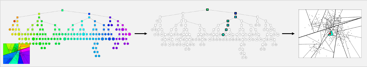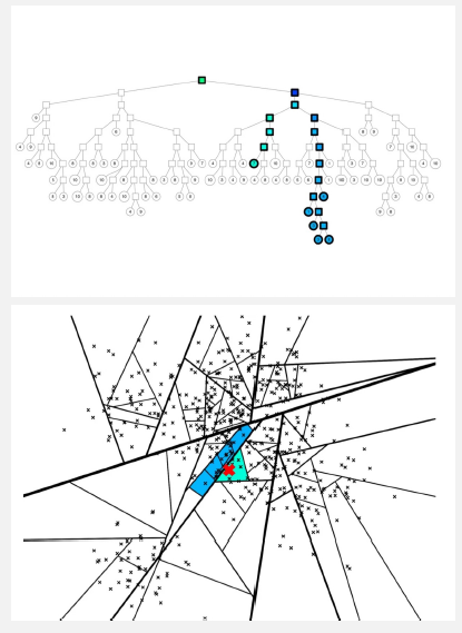 → ANN를 구하기 위해서는 현재 점을 binary tree에서 검색한 뒤 해당 subspace에서 NN을 search