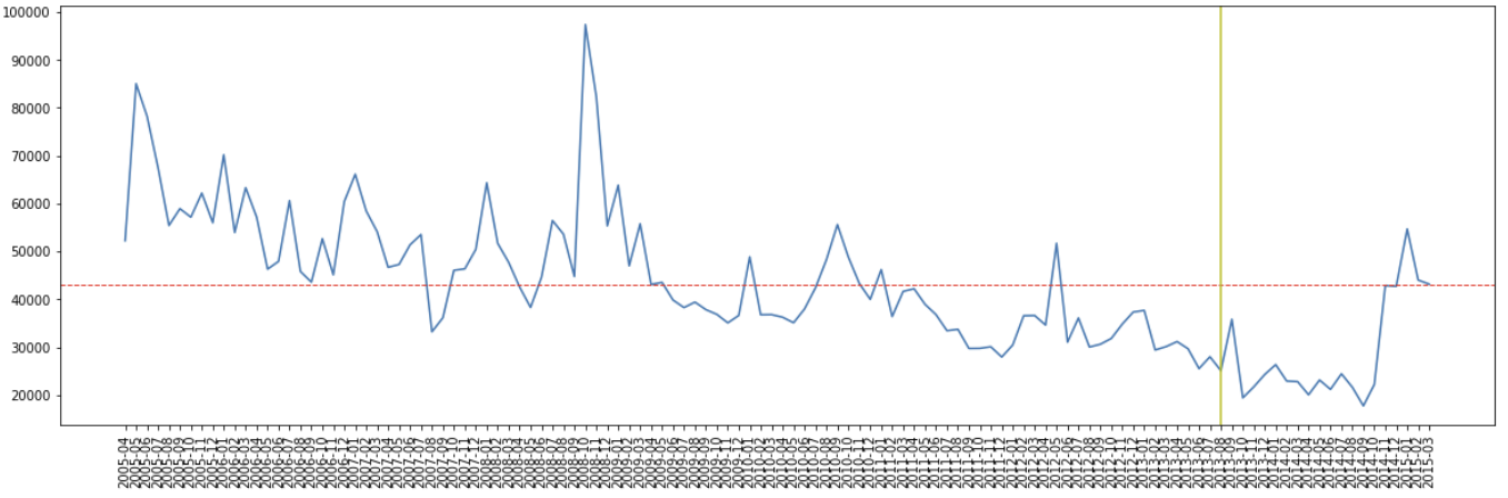 plt.axhline(y=np.mean(yy_), color='r', linewidth=1, linestyle='--')