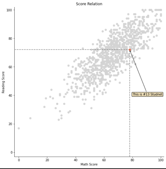 위 예시 코드로 아래와 같은 그림을 그릴 수 있다. 축과 평행한 선을 그리기 위해 ax.plot([시작점],[끝점])을 지정해준다. 또한 dict() 형식으로 arrowprops를 저장한 뒤, ax.annotate를 통해 특정 위치를 화살표로 가리키게 할 수 있다. bbox를 통해 원하는 형태로 텍스트를 추가할 수 있고, zorder로 해당 annotate의 layer에서의 위치를 결정할 수 있다.(앞으로 가져오기, 뒤로 보내기 등의 효과)
