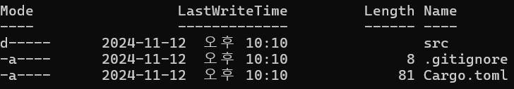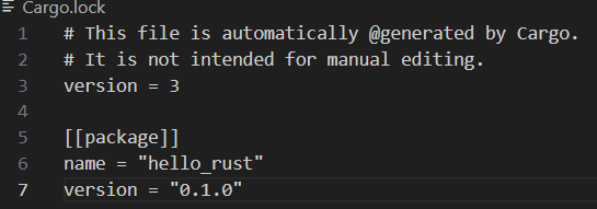 자동으로 Cargo.lock 파일이 생성되었다. 이게 어떤 역할을 하는지는 차차 알게 되겠지..