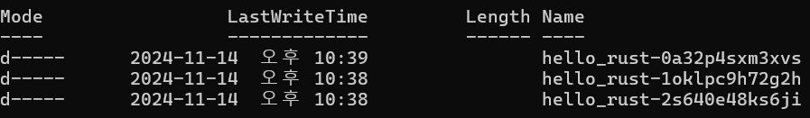 프로젝트 내 target/debug/incremental 디렉토리를 보면, 소스코드 변경 후 빌드를 반복할 때마다 무언가 파일이 쌓인다.