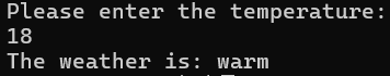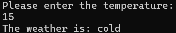 위와 같이 작성하고 실행해보면, 동적으로 입력된 stdin에 따라 "weather" 변수가 셋 중 하나로 할당된다.