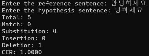 놀라운 것은 " jiwer 라이브러리의 기능을 직접 구현해야 할 것 같네요. " 라고 말한 뒤 세부 error 계산을 위한 로직을 알아서 구현했다는 점.. 하지만 그럼에도 정확한 구현은 아니었다.
