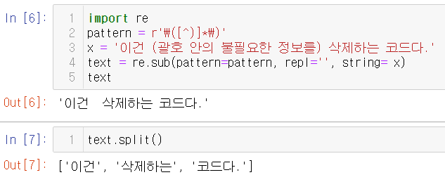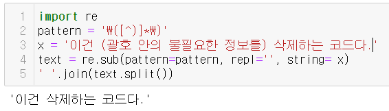 x = '이건 (괄호 안의 불필요한 정보를) 삭제하는 코드다.'