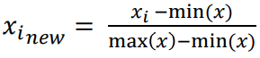 최대, 최소값을 이용해 모든 데이터를 0과 1사이의 값으로 변경한다. 간단한 예시는 아래와 같다.
