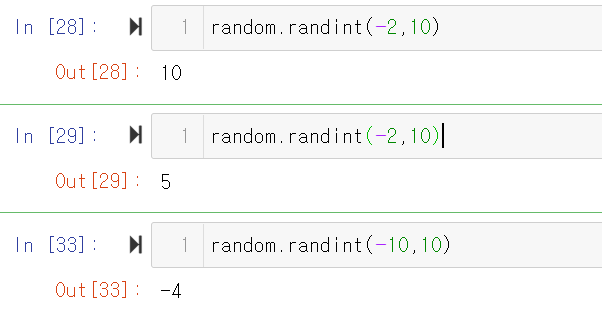② random.randint(a,b): a 이상 b 이하 범위의 임의의 정수 반환
