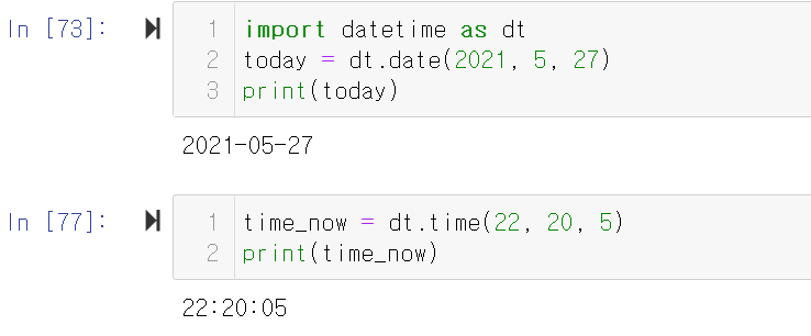 다음과 같이 날짜, 혹은 시간을 직접 변수로 설정하거나