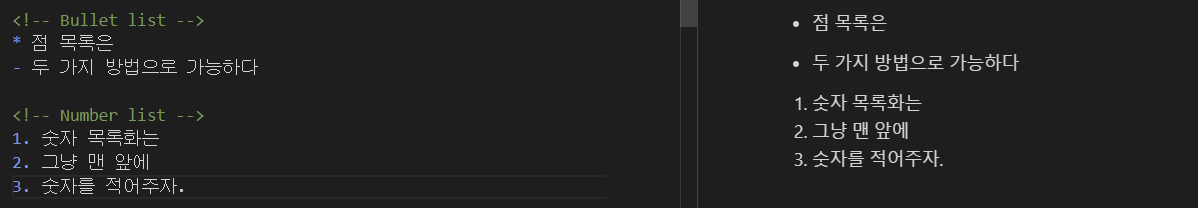 점 혹은 숫자 목록은 아래와 같이 형성할 수 있다.