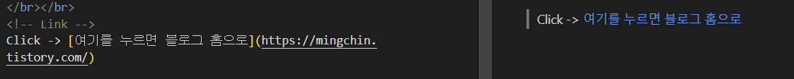 하이퍼링크를 삽입하고 싶은 경우는 [here](링크)를 활용하자.